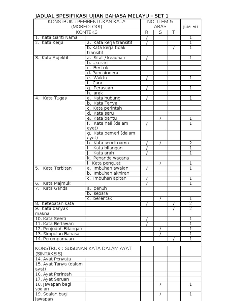 Contoh Jadual Spesifikasi Ujian Bahasa Melayu Tingkatan 5